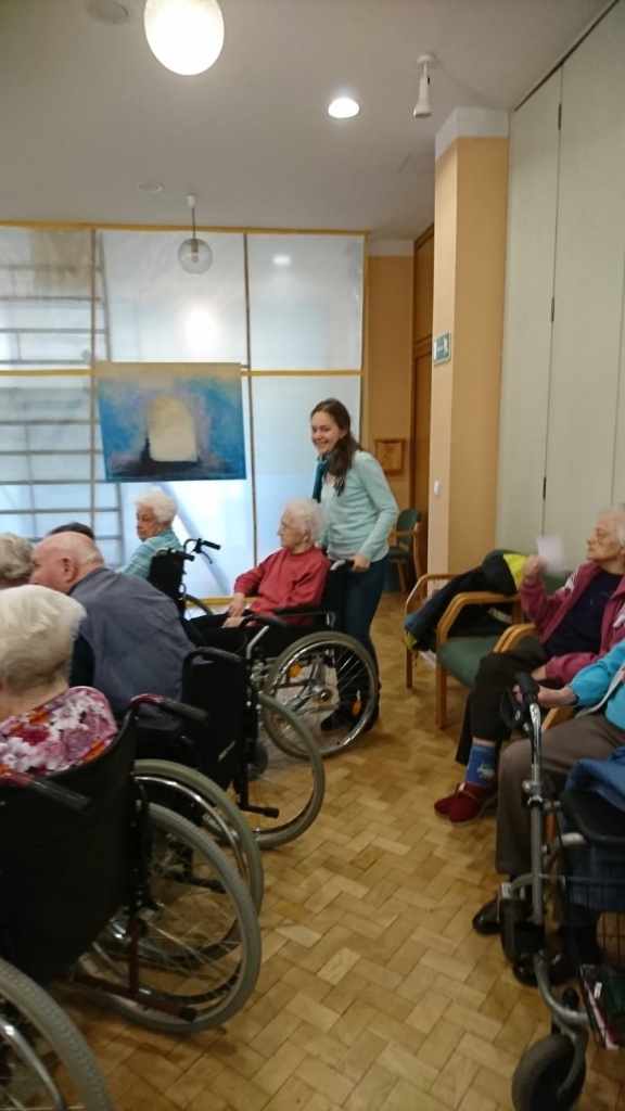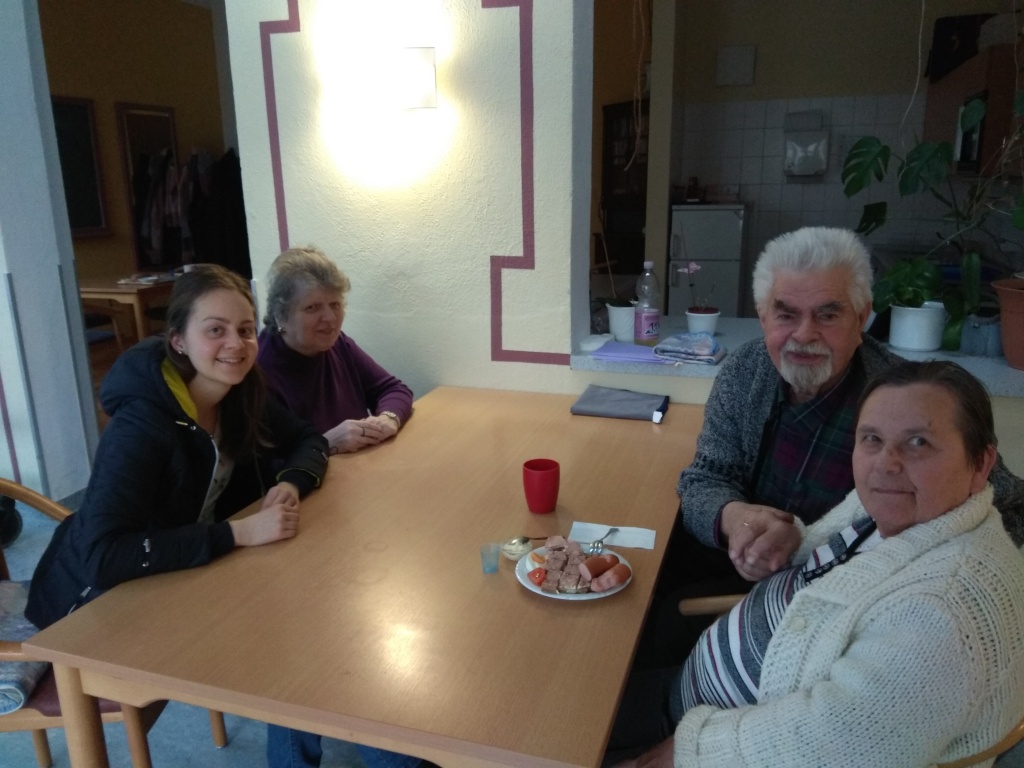 Bola som v malom, asi 11-tisícovom meste Eisenberg v Durínsku v zariadení pre seniorov. Tu som hlavne trávila čas s našimi klientmi – prechádzkami, rozhovormi, doprovodom pri kultúrnych a náboženských podujatiach, ponukami pre skupiny i jednotlivcov, napríklad čítaním dennej tlače, spievaním, pripravovaním hier. Mala som možnosť nahliadnuť aj do oblasti opatrovateľstva, kde som našim bewohnerom, obyvateľom domova hlavne podávala stravu a tekutiny.