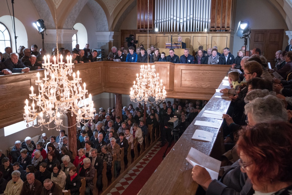 Nedeľný program sa začal hlaholom zvonov z veže chrámu Božieho a následne slávnostnými službami Božími v kostole a pristavenom veľkom stane, kde mali veriaci, ktorí sa nevmestili do kostola možnosť prežiť služby Božie prostredníctvom obrazoviek.