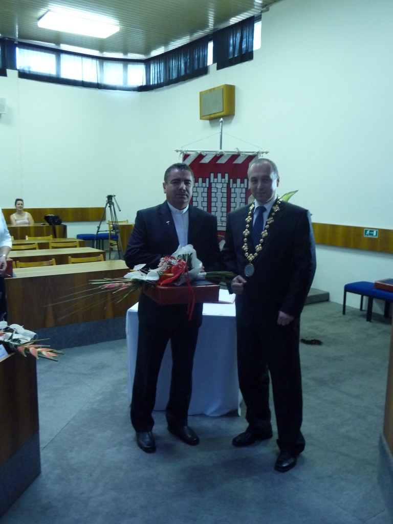 Najvyššie verejné ocenenie – Cenu mesta Považská Bystrica prevzal z rúk primátora mesta Doc. Dr. Karola Janasa brat diakon Ľubomír Marcina – duchovný správca CZ ECAV v Považskej Bystrici.