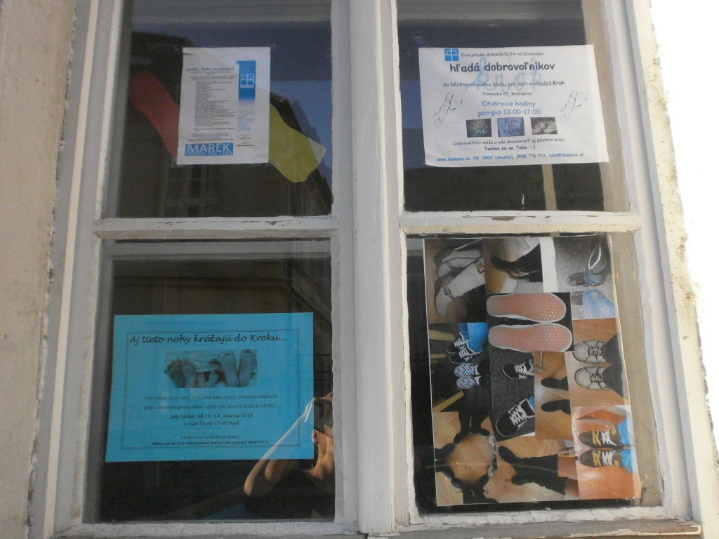 Fotografie sme vyvolali. Spoločne s deťmi sme vytvorili štyri koláže, ktoré sú umiestnené na oknách do Panenskej ulice. Okoloidúci si tak môžu pozrieť výsledok nášho malého projektu. Každé dieťa, ktoré v Kroku trávi čas, tak nechalo po sebe malú anonymnú stopu.