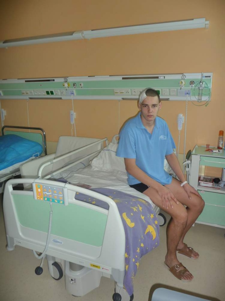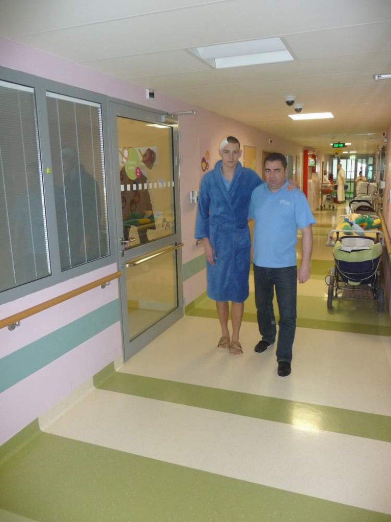 Tento 20 ročný, talentovaný futbalista – brankár, po smrti svojho otca v júli minulého roka nastúpil pracovať do nášho zariadenia. Jeho doterajší život bol naplnený strádaním a poznačený ťažkou zdravotnou diagnózou – epilepsiou. Začali sme preto hľadať možnosti ako mu pomôcť zmierniť, či vyliečiť jeho ťažké navštívenie. Keďže pomery v slovenskom zdravotníctve nespĺňali naše očakávania, obrátili sme sa na nemocnicu v Prahe - Motole o pomoc. Tu sa tieto náročné operačné zákroky vykonávajú už niekoľko rokov na špičkovej neurochirurgickej klinike s vynikajúcimi výsledkami. Nakoľko sa jednalo aj o finančne náročnú záležitosť, museli sme podstúpiť a aj čeliť neskutočnej byrokracii slovenského zdravotníctva. Narážali sme na veľkú neochotu a až pokusy zmariť všetky naše takmer polročné snahy a obete. Tie pozostávali z absolvovania niekoľkých odborných vyšetrení v Prahe, ktoré zistili, že pacient je vhodný kandidát na operačný zákrok. Jakub 28.2.2013 podstúpil náročnú osemhodinovú operáciu mozgu s úspešným výsledkom. Po celú dobu zákroku i po ňom sme mu boli spolu s jeho matkou osobnou oporou na ustavičných modlitbách, v ktorých sme prosili Pána Boha o jeho uzdravenie. I tu nám Pán dokázal svoju moc a lásku, ako aj požehnanie podujať sa aj na takúto praktickú službu Diakonie v zmysle biblických slov Gal.6,2 „Jedni druhých bremená znášajte. “Ďakujeme Pánu Bohu za vypočuté modlitby veľkého množstva modlitebníkov. V nemalej miere vyslovujeme úprimné poďakovanie Prof. MUDr. Pavlovi Traubnerovi za všetku pomoc a ústretovosť, ako aj ošetrujúcim lekárom z Novej Dubnice a Dubnice nad Váhom, zvlášť MUDr. M. Perichtovej. Naša veľká vďaka patrí Doc. MUDr. Michalovi Tichému, prednostovi oddelenia, Doc. MUDr. Pavlovi Krškovi s týmom spolupracovníkov neurochirurgickej kliniky Praha -Motol, ktorí operáciu osobne previedli. Nadovšetko si ceníme úžasný ľudský prístup a jednanie týchto odborníkov ako aj špičkové vybavenie oddelenia kliniky. Avšak naša najväčšia vďaka patrí Pánu Bohu, že usmerňoval, viedol požehnával a dával dosť síl všetkým, čo mali snahu pomôcť zachrániť mladý ľudský život. Radostným bol pre nás všetkých najväčší ev. sviatok – Veľký piatok, keď v rámci pašiových služieb Božích v preplnenom ev. kostole v Pov. Bystrici sme mohli medzi sebou privítať Jakuba Šebestu. Bolo to presne mesiac po operácii, keď Jakub s kyticou kvetov sa osobne postavil pred oltár a spolu s pánom primátorom mesta Nová Dubnica Ing. Petrom Marušincom ďakovali za tento veľký bohumilý skutok, čo v kázni slova Božieho vyzdvihol aj Prof. Dr. Igor Kišš. Primátor mesta Považská Bystrica Doc. Dr. Karol Janas pozdravil bohoslužobné zhromaždenie s príležitosti štátneho sviatku.