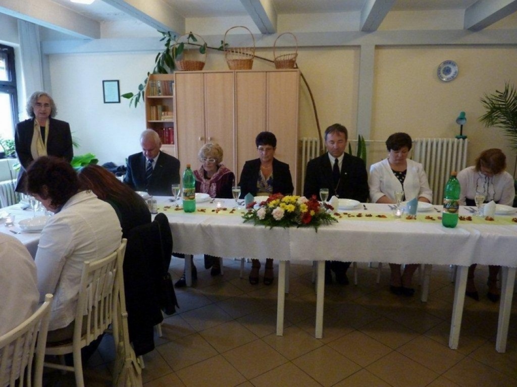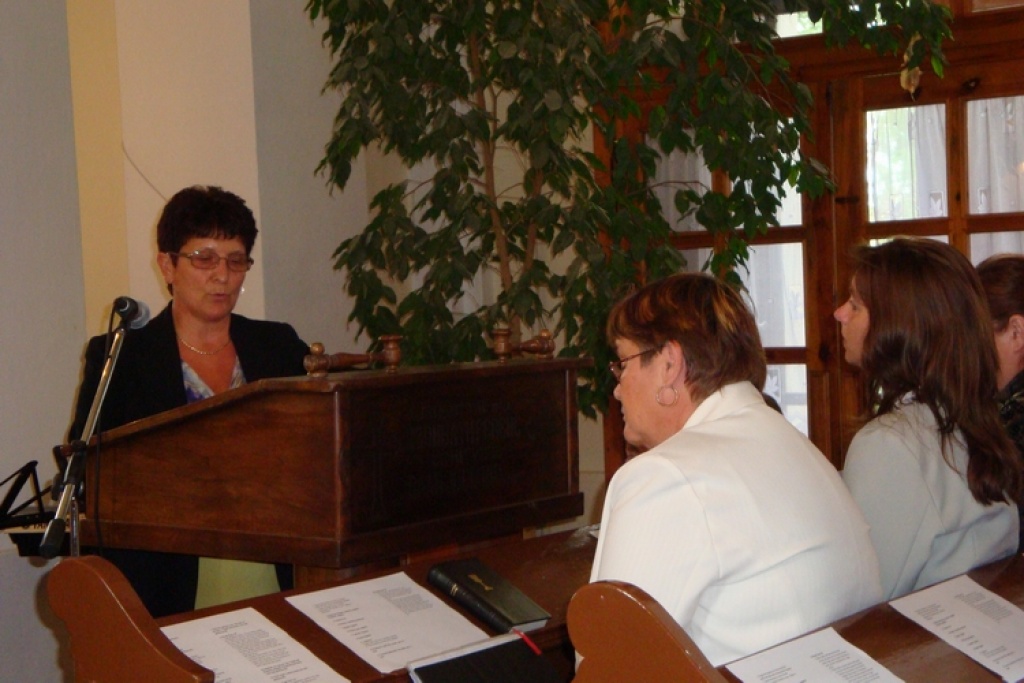 Po skončení služieb Božích sa zhromaždenie presunulo do zariadenia Domova sociálnych služieb. Tu prostredníctvom sestry Zuzany Kolárovskej, prvej riaditeľky Evanjelickej diakonie, mali prítomní možnosť „autentického" návratu o 20 rokov späť. V jej podaní išlo nielen o zaujímavý, ale aj poučný návrat do minulosti. Prvé roky po zmene politického režimu boli plné eufórie, radosti a chuti do práce. Tieto emócie však často narážali na „obyčajnú" neznalosť. Čo treba a ako to treba robiť (nie len v oblasti sociálnych služieb), sa všetci iba učili. K prvým štyrom projektom: Červenica - hluchoslepé deti, Ľubietová - domov detí, Svätý Jur - ubytovanie a školiace zariadenie a Horné Saliby - zariadenie pre seniorov ( dnes by sme ich nazvali pilotnými), sa rýchlo pripojil aj piaty - Kšinná. Tak vznikli základy dnešnej siete stredísk, ktorých je v súčasnosti už 18.