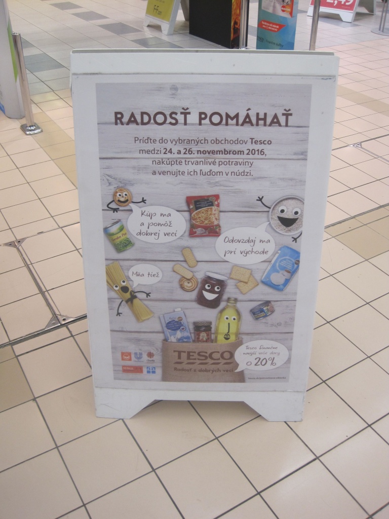 Evanjelická diakonia ECAV na Slovensku sa v dňoch 23. – 26. novembra zapojila do potravinovej zbierky, ktorú štvrtý rok organizuje obchodný reťazec TESCO vo vybraných predajniach v spolupráci s charitatívnymi organizáciami – Slovenskou katolíckou charitou, Potravinovou bankou Slovenska, Depaul Slovensko, OZ Vegas. Zákazníci sa do zbierky mohli zapojiť v 80 predajniach Slovenska. Do tohtoročného projektu pomoci ľuďom v núdzi bola Evanjelická diakonia zapojená druhýkrát. Pracovníci, spolupracovníci, dobrovoľníci Ústredia Evanjelickej diakonie, stredísk evanjelickej diakonie a cirkevných evanjelických a.v. zborov pomáhali v predajniach TESCO zbierať trvanlivé potraviny, drogériový tovar, prostriedky osobnej hygieny. Zozbieraná pomoc je určená pre deti, seniorov, zdravotne postihnutých, rodiny, ktorí sa ocitli v zložitej životnej a sociálnej situácii.