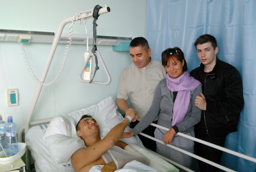 Matka zraneného Andreja, mimochodom vdova, sa preto obrátila o pomoc aj na SED v Košeci, v nádeji sprostredkovať takýto zákrok. Naše zariadenie promptne reagovalo na jej žiadosť a na základe dobrých vzťahov kontaktovalo Neurochirurgickú kliniku, osobne jej prednostu Prof. MUDr. Pavla Haninca, CSc., špičkového odborníka svetového formátu (mimochodom Slováka). Nesmierne si vážime ochotu a pomoc členky Správnej rady Evanjelickej Diakonie na Slovensku MUDr. Zlatice Krupičkovej spolu s manželom Ing. Vladimírom Krupičkom, ktorí osobne doručili potrebné CT vyšetrenia do Prahy a dojednali termín operácie. Po transporte a mnohých vyšetreniach zraneného Andreja v Prahe, bola naplánovaná niekoľkohodinová operácia ťažko porušeného ramena na 20. október 2016. Opäť tvrdým orieškom bolo získať náročné finančné krytie operácie zo zdravotnej poisťovne. Po úspešnej operácii sme mohli v sobotu 22. októbra navštíviť pacienta pri jeho nemocničnom lôžku v doprovode jeho statočnej matky Moniky Dudášovej, Ing. Marcela Breče, riaditeľa SED v Košeci i mladého brata Lukáša Valaského, študenta medicíny UK v Prahe. Brat diakon Ľubomír Marcina, správca SED v Košeci v modlitbách pri jeho lôžku oslavoval Hospodina za Božiu milosť preukázanú bratovi Andrejovi skrze tým zdravotníckych odborníkov. I tu nám Pán dokázal svoju moc a lásku i požehnanie podujať sa aj na takúto praktickú službu Diakonie v zmysle biblických slov Gal. 6,2 „ Jedni druhých bremená znášajte!“ Ďakujeme Pánu Bohu za vypočuté modlitby veľkého množstva modlitebníkov . V nemalej miere vyslovujeme úprimné poďakovanie Prof. MUDr. Pavlovi Hanincovi za ústretovosť, ako aj týmu jeho spolupracovníkov. Nadovšetko si ceníme úžasný ľudský prístup a jednanie týchto odborníkov ako aj špičkové vybavenie kliniky. Rovnaká vďaka patrí lekárom a zdravotníckym pracovníkom fakultných nemocníc v Žiline a v Martine. Úprimná vďaka patrí aj gen. riaditeľovi Považských cementární Ladce Ing. Antonovi Barcíkovi. Avšak naša najväčšia vďaka patrí Pánu Bohu, že usmerňoval, viedol, požehnával a dával dosť síl všetkým, čo mali snahu pomôcť zachrániť mladý ľudský život. Po hospitalizácii v Prahe bolo potrebné zabezpečiť prevoz pacienta na Slovensko. Aj v tomto prípade SED Košeca sa dokázalo ako skúsený poskytovateľ i takejto služby. Radostným bol pre nás všetkých 31.október 2016 – sviatok Pamiatky Reformácie, keď náš diakonický mikrobus, riadený spolupracovníkom Martinom Kečkárom zaparkoval na nádvorí SED v Košeci, aby naše prvé kroky spolu s pacientom smerovali do kaplnky SED ku krátkej pobožnosti. Po duchovnom občerstvení a požehnaní v kaplnke nasledovalo i občerstvenie tela s láskou pripraveného v našej kuchyni. A tak po prestávke v SED Košeca, nasledovala vytúžená cesta Andreja s matkou domov. Jeho zdravotný stav si vyžiada ešte mnoho trpezlivosti, lekárskej a rehabilitačnej starostlivosti i praktickej služby lásky - diakonie.